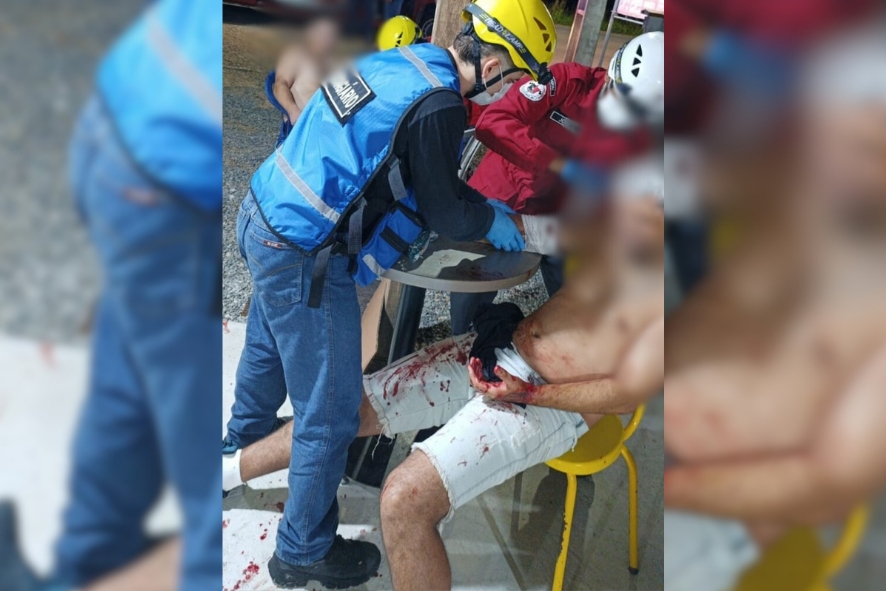 Quando a guarnição chegou ao local, as vítimas já estavam sendo atendidas pelo Corpo de Bombeiros. Um dos homens apresentava ferimento por disparo de arma de fogo no braço, enquanto o outro foi atingido na perna. Ambos foram encaminhados ao pronto-socorro para avaliação e atendimento médico.