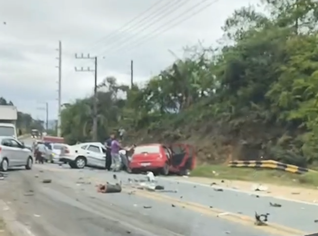 Um motorista morreu após um grave acidente envolvendo um caminhão e dois carros na BR-280, próximo ao Motel CQSabe, no bairro Estrada Nova, em Jaraguá do Sul. A colisão ocorreu por volta das 8h43 da manhã desta quinta-feira (06). O motorista do Vectra sofreu graves ferimentos e morreu no local. O motorista do Clio recebeu atendimento no local, sendo conduzido para avaliação médica.