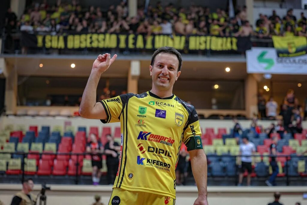 O Jaraguá Futsal anunciou nesta quarta-feira (24) a primeira permanência para a temporada 2026, garantindo a continuidade de um dos maiores ídolos da história do clube: o capitão Leco. O anúncio chega após a oficialização da saída de seis jogadores, trazendo alívio e expectativa para os torcedores aurinegros.