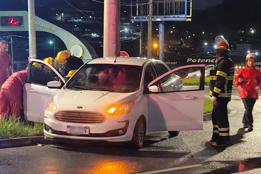 Uma colisão de trânsito foi registrada na noite deste domingo (18) na BR-280, em Guaramirim, nas proximidades do Trevo do Relógio. Um carro saiu do controle e acabou atingindo um poste às margens da rodovia.