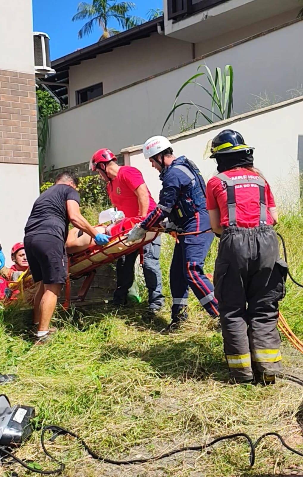 Após o resgate, o pintor recebeu atendimento pré-hospitalar no local e foi encaminhado ao hospital pelo suporte avançado do Serviço de Atendimento Móvel de Urgência (Samu). Segundo as equipes de socorro, o estado de saúde foi considerado potencialmente estável.