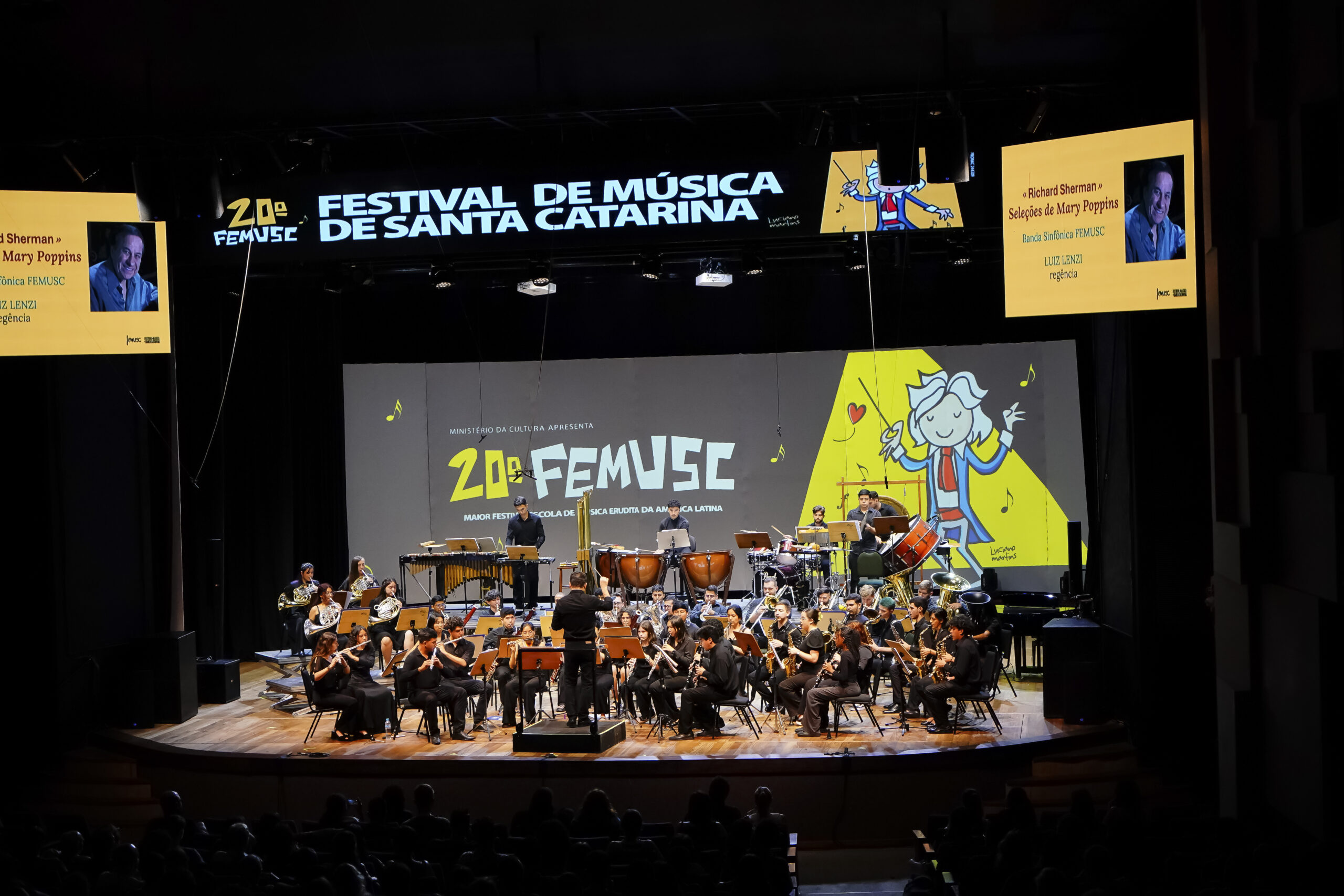 Já nos dias 17 e 23 de janeiro, as apresentações acontecem no Parque Via Verde e na Praça Ângelo Piazera, respectivamente. Nessas ocasiões, o público poderá acompanhar o concerto da Banda Sinfônica do FEMUSC, composta por cerca de 60 músicos, entre estudantes brasileiros e estrangeiros de alto nível técnico. O repertório traz obras escritas especificamente para formações sinfônicas de banda, com instrumentos pouco comuns na música popular.