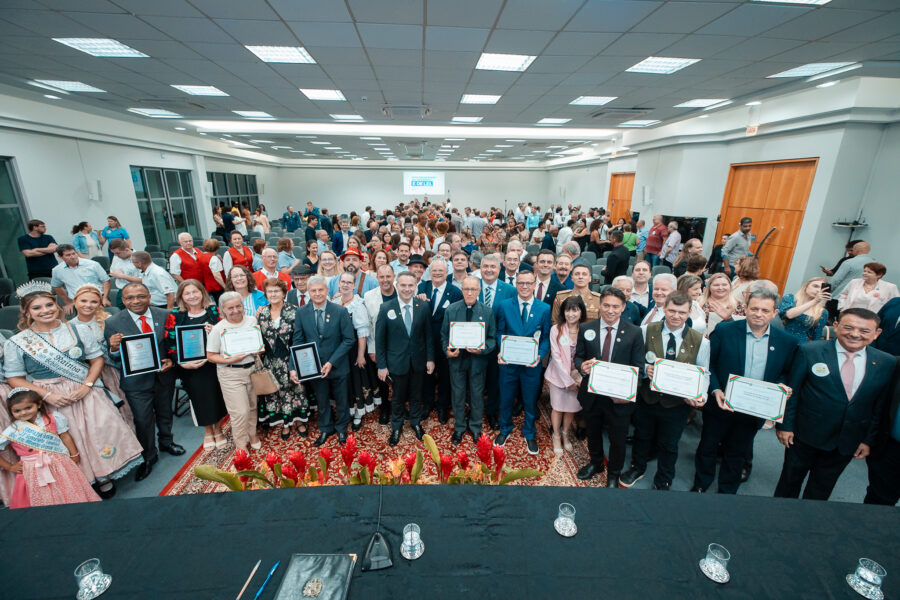 Durante a solenidade, que aconteceu no Centro Empresarial de Jaraguá do Sul (Cejas), também foram destacadas as instituições que contribuíram para o desenvolvimento do município.