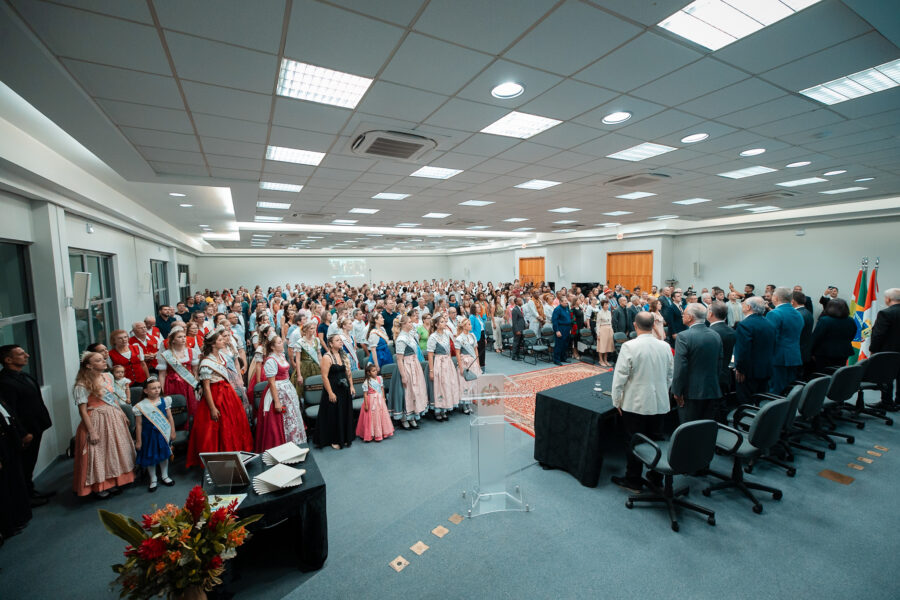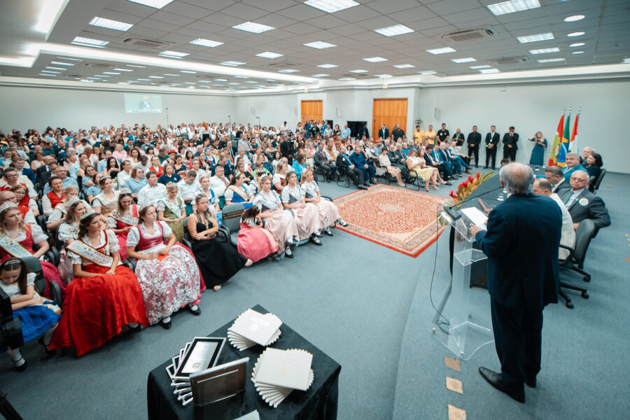 Lideranças políticas, representantes de entidades culturais e empresariais, integrantes de poderes e órgãos públicos da região Norte do estado reuniram-se na noite desta segunda-feira (30) em uma sessão solene promovida pela Assembleia Legislativa em homenagem aos 150 anos de fundação de Jaraguá do Sul. A reportagem da RBN conversou com o prefeito Jair Franzner, o Deputado Vicente Caropreso e o presidente da CCO da Expo 150, Luis Leigue. Ouça parte das falas nos players abaixo: