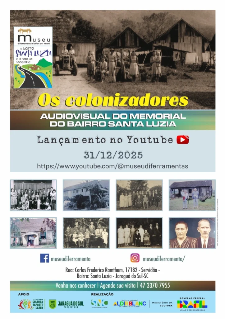 Um novo projeto audiovisual está ajudando a preservar e contar a história da formação do Bairro Santa Luzia, em Jaraguá do Sul, por meio de imagens, pesquisas e registros contemporâneos. O Memorial Audiovisual do Bairro Santa Luzia – Os Colonizadores acaba de ser concluído pela equipe do Museu di Ferramenta D’Affari dei Nonni, reunindo um diagnóstico histórico detalhado e uma produção em vídeo que conecta passado e presente da comunidade.